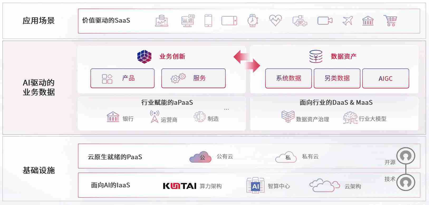 数字时代,,围绕企业数字化转型的关键要素,,,欧博代理平台数码开创性的提出数云融合战略和技术体系框架,,,着力在云原生、、数字原生、、、AI原生和信创产业上架构产品和服务能力,,,,为处在不同数字化转型阶段的快消零售、、、汽车、、、、金融、、医疗、、、、政企、、、、教育、、、、运营商等行业客户提供泛在的敏捷IT能力和融合的数据驱动能力,,,,构建跨界融合创新的数字业务场景和新业务模式,,,,助力企业级客户建立面向未来的核心能力和竞争优势,,,全面推动社会的数字化、、、智能化转型升级。。。